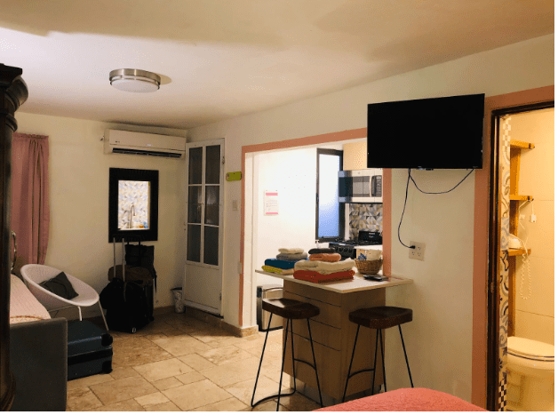 Guests have a few different units to choose from. I chose the Pink room, centrally located between the pool and the jacuzzi, not far from la hacienda. The Pink room is a full studio unit, with a full kitchen and bathroom. Though I wasn’t able to consume cannabis indoors (smoking indoors is not allowed, vaping is), I was able to consume anywhere outdoors: the pool, the jacuzzi, the rooftop deck, right outside my door, etc. There was enough cover from the sun and rain to consume outside comfortably.