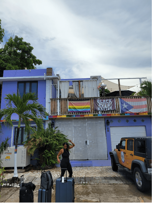 This is such a lovely place in San Juan, close to Carolina and Loiza, just footsteps away from the Atlantic Ocean, and about a 10 minute car ride away from Isla Verde (there’s generally traffic all times of the day in the heart of the city). When I arrived, I smiled at the cuteness and inclusiveness of the guesthouse; there’s an equality flag, a Puerto Rican flag, and a Black Lives Matter flag hanging at the entrance. The palm trees just outside of the main entrance were painted in the colors of the rainbow, and the structure itself had the colors of the rainbow painted along the front. Before walking through the main door, I felt welcomed, included…considered.